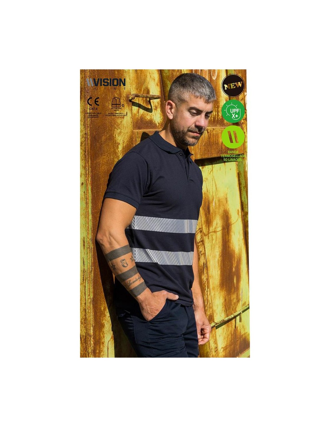 2 bandas termo selladas discontinuas en torso certificadas en 50 lavados
