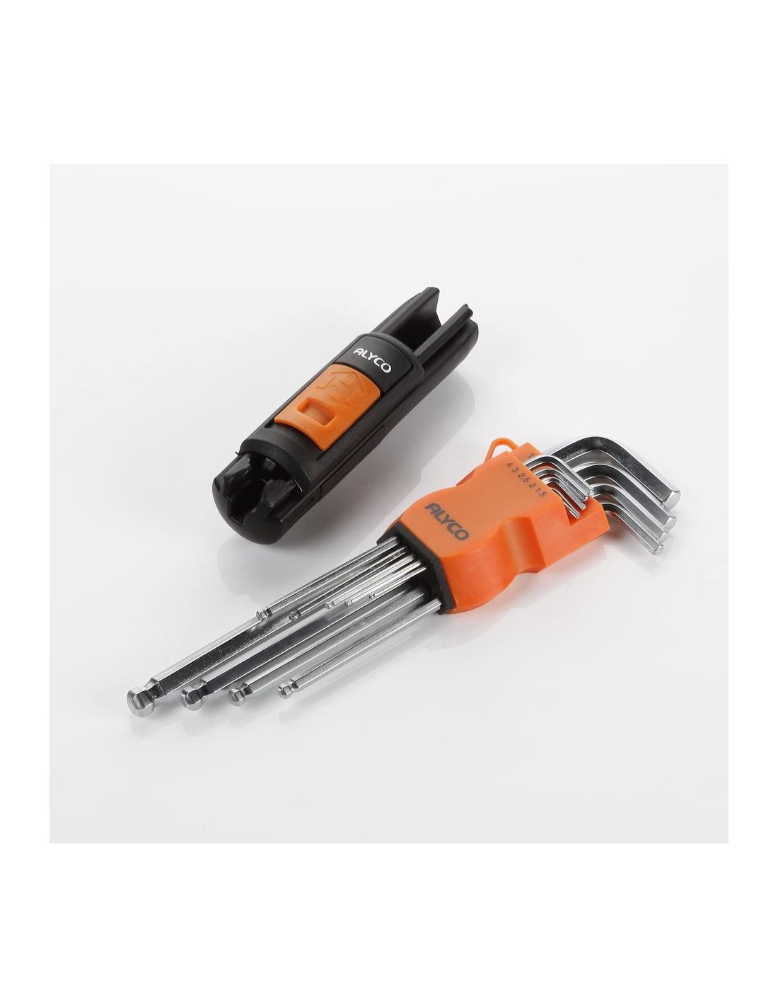 Juego de 9 llaves allen de bola fabricadas en acero al Cromo Vanadio, con tratamiento térmico que le da máxima durabilidad y resistencia al desgaste.
